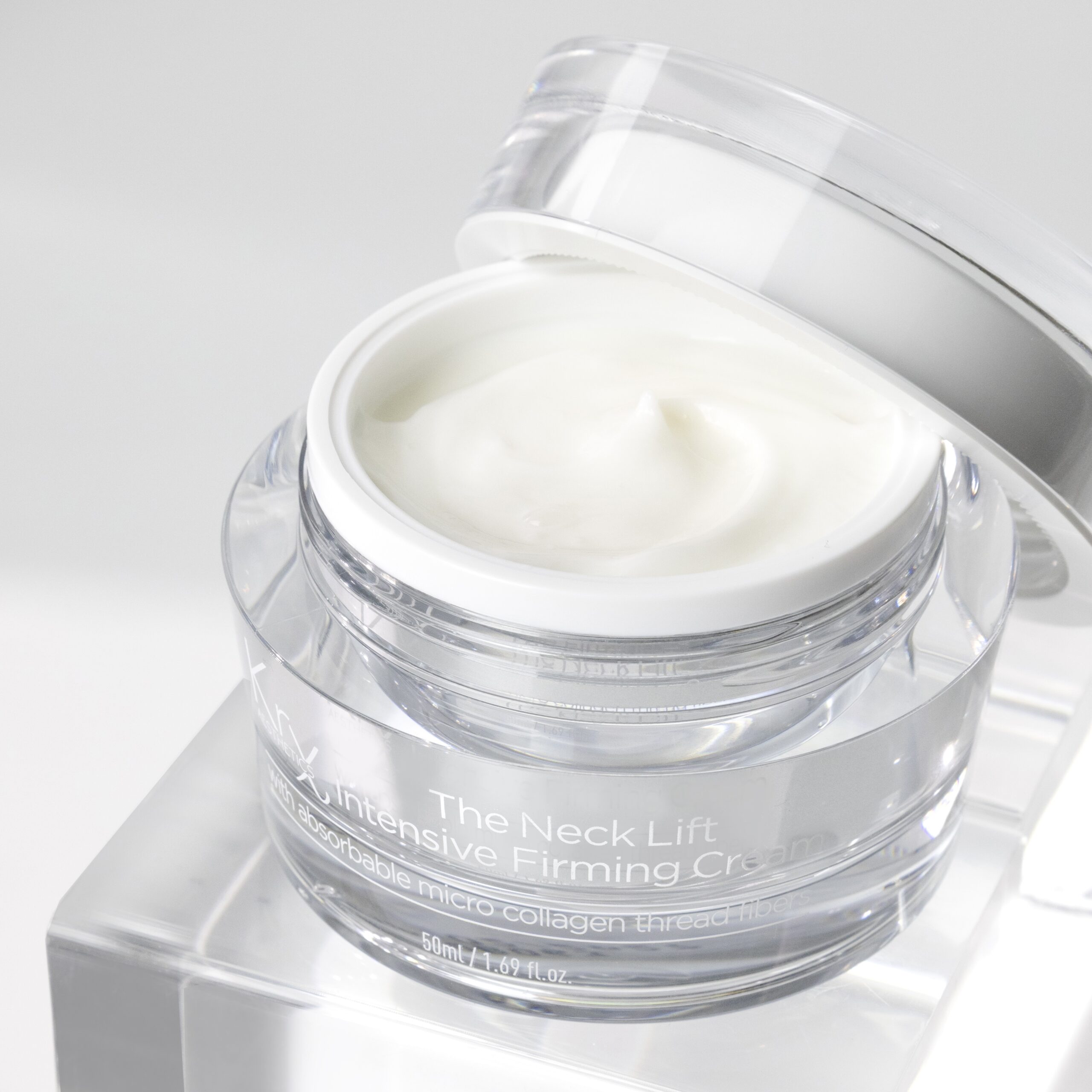 Krem zawiera 22 składniki aktywne, które intensywnie ujędrniają skórę. Dzięki proteinom jedwabiu posiada unikalną teksturę, przypominającą nici, które wnikają w skórę szyi, napinają ją i stymulują produkcję własnego kolagenu. Mikrokolagen w składzie sprawia, że krem wchłania się szybciej i skuteczniej niż tradycyjny kolagen. Poprawia strukturę skóry, redukuje zmarszczki, suchość, plamy starcze oraz posłoneczne, a także wygładza owal twarzy i pręgi na szyi.